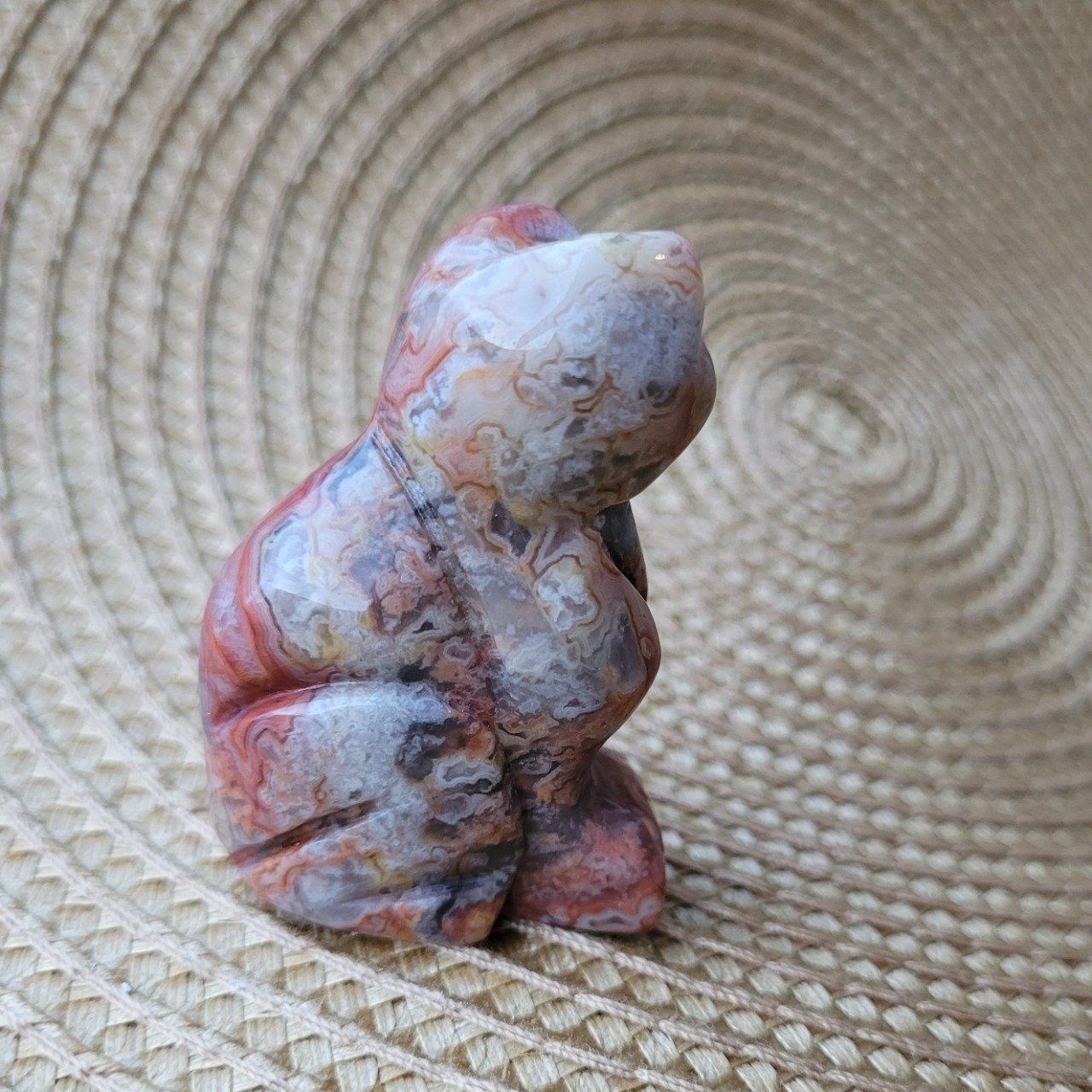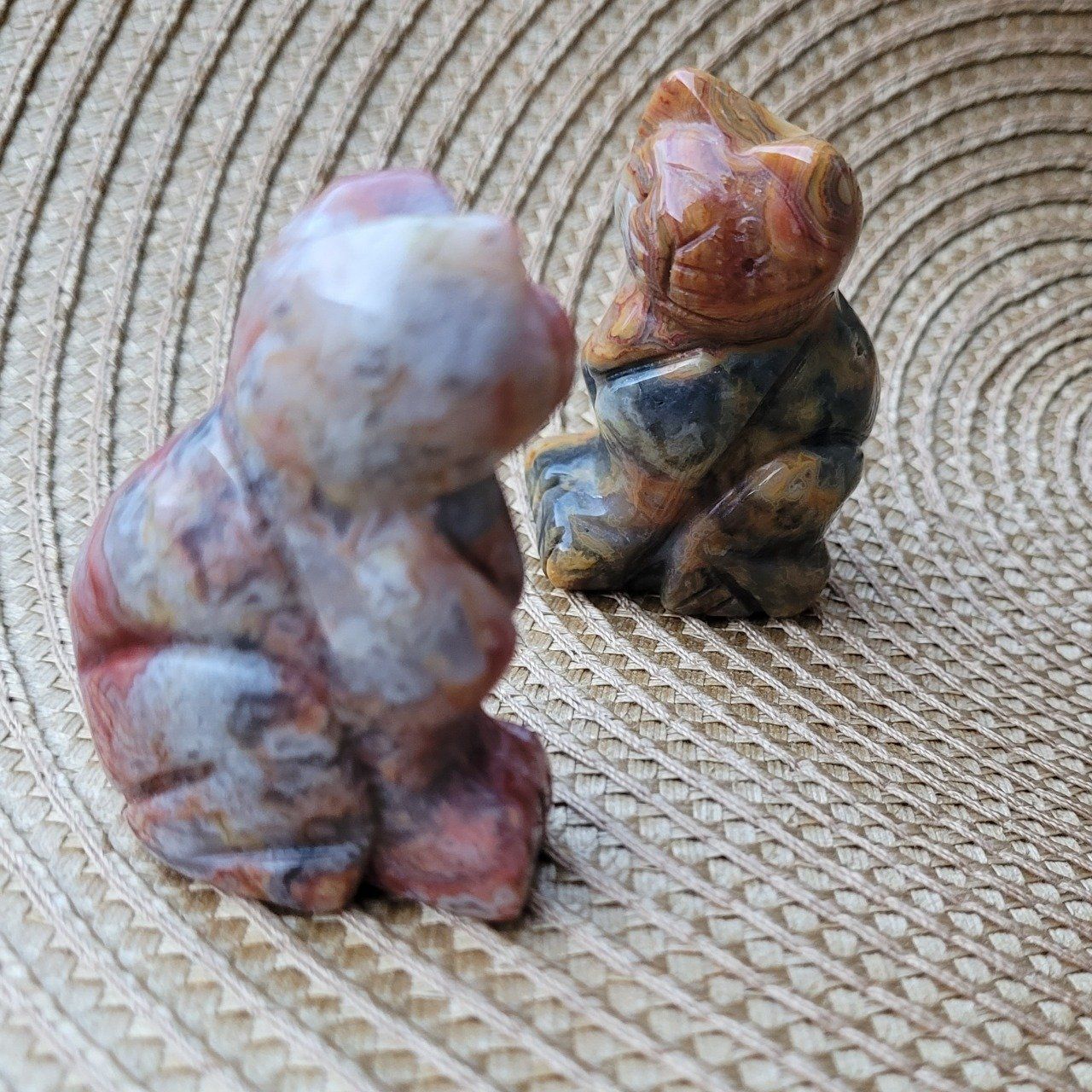🔸 Symbolique : Le chat représente l’intuition et l’indépendance, tandis que l’agate crazy lace favorise l’optimisme et la vitalité